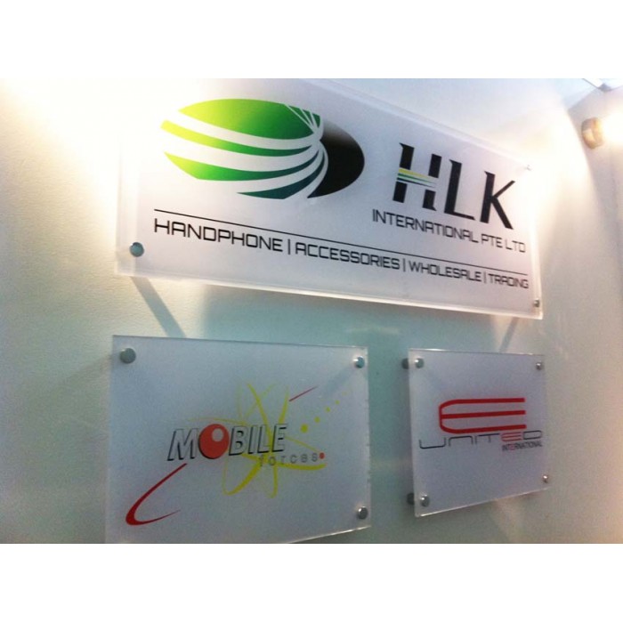 Sticker, Signage White + Transparent Sticker, 4C X 0C, Size: 40 X 27 CM, 4 Holes with screw spacer, 5mm Arcylic mounting